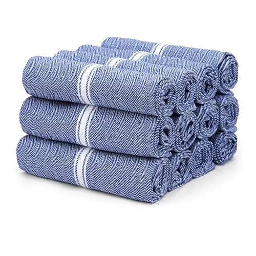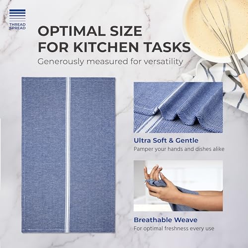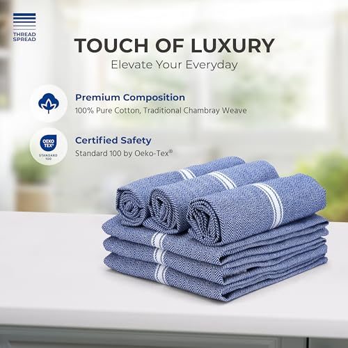 THREAD SPREAD Kitchen Towels Set – 100% Cotton Dish Towels for Kitchen – Pack of 12 Super Absorbent Kitchen Hand Towel – Blue Tea Towels – Quick Dry & Soft Durable Dish Cloths – 15”x25”, Blue Chambray