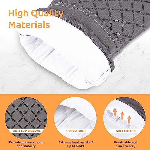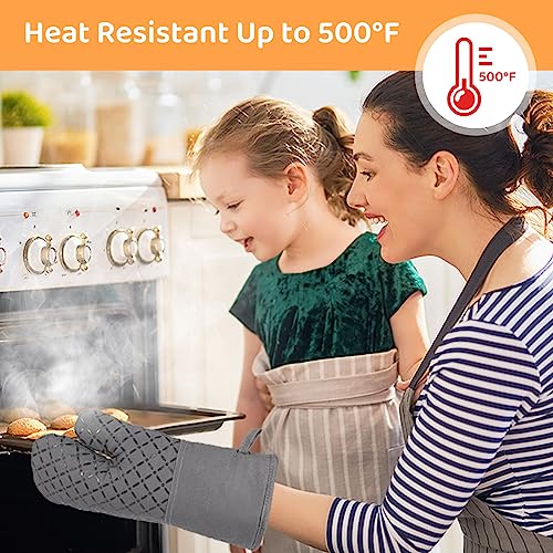 🍳【Heat Resistant Up To 500 Degrees】Our kitchen oven mitts are made with three layers of premium heat-resistant materials to provides heat protection up to 500°F / 260°C. Suitable for many scenarios such as kitchen baking, grilling, serving pots and pans. Long 13” oven gloves effectively protect hands/arms from burns.