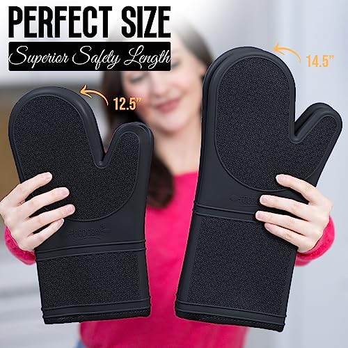 Silicone Oven Mitts – 12.5” Jet Black Oven Mitts Heat Resistant 500F – Grippy Design,Soft Lining Silicone Oven Gloves – Oven Mits Set for Cooking Baking Kitchen Mittens Pot Holders Set of 2