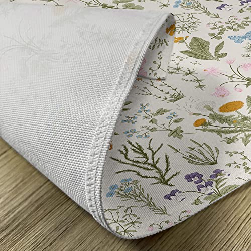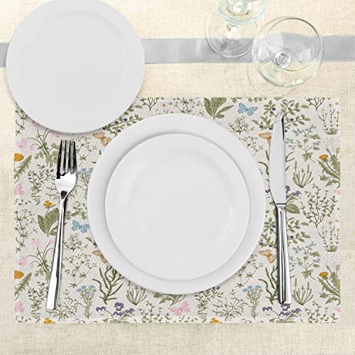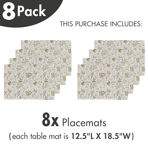 Ambesonne Floral Place Mats Set of 8, Vintage Garden Plants Herbs Flowers Botanical Classic Design Art, Washable Fabric Placemats for Dining Table, Placemat 8 pcs, Reseda Green Beige