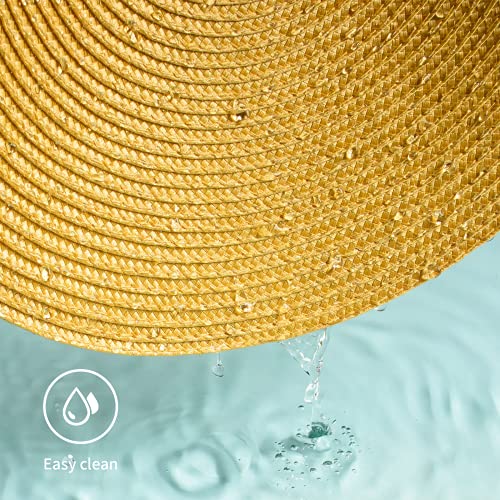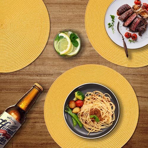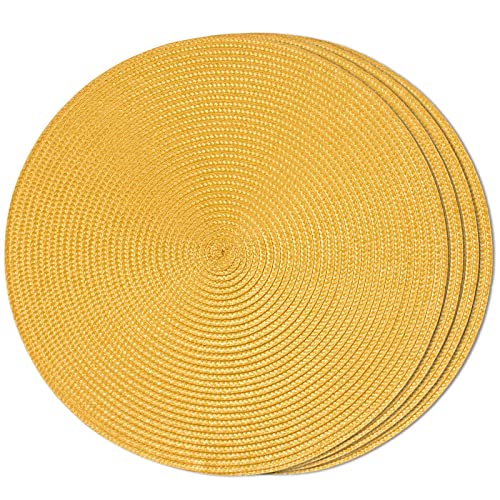 FunWheat Round Braided Placemats Set of 4 Table Mats for Dining Tables Woven Washable Non-Slip Place mats 15inch (Yellow, 4pcs)
