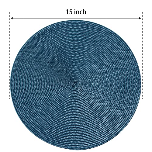 FunWheat Round Braided Placemats Set of 6 Table Mats for Dining Tables Woven Washable Non-Slip Place mats 15 inch for Spring(blue, 6pcs)