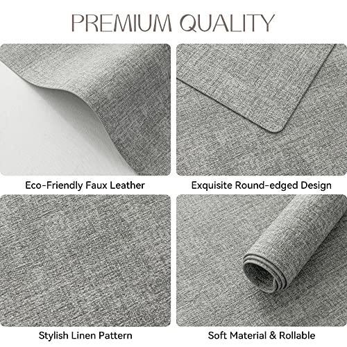 Romanstile Vinyl Placemats Set of 4-12 X 18 Inch – Heat Resistant Place Mats 100% Waterproof Oilproof Wipeable Reversible Faux Leather Table Mats for Kitchen/Dining/Party/Outdoor, Light Grey
