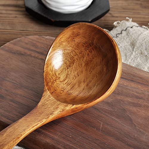 FJNATINH Wooden Ladle. Long Handle Ladle Utensils for Soup.Handmade for Kitchen Cookware (Ladle)