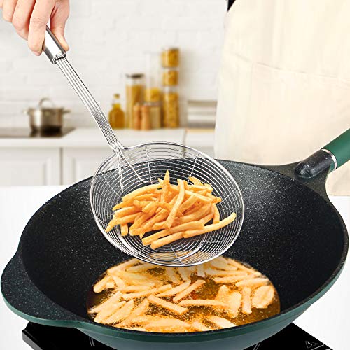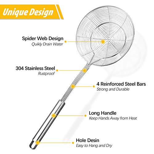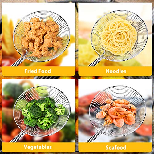 Pack of 2 Large Spider Strainer, Stainless Steel Skimmer Basket,Kitchen Ladle Strainers,Mesh Spoons with Long Handle, Cooking Tools for Frying, Boiling Noodles, Dumplings, Pasta
