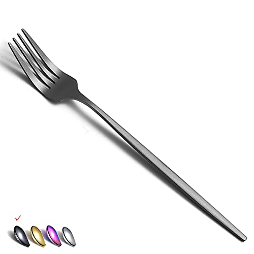 【High Quality Materiale】: This dinner forks are made of high quality stainless steel, Plating with titanium black, Sturdy rust proof, Lead-free, Cadmium-free, Phthalate-free, BPA-free durable and eco-friendly. It is an excellent substitute for plastic forks.Dishwasher Safe,You can put them in a dishwasher and they go out for saving time. Make sure do not use the hard detergent.