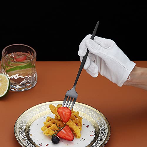 【Luxury and High Quality Finish】: These black great dinner forks are polish with matt finish and plating with titanium black. Looks luxury and beautiful. The black titanium plating would protect the surface of silverware from scrath. Food grade material healthy for daily use.