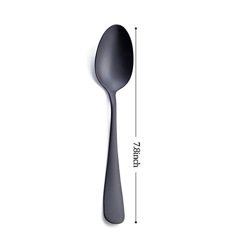 Matte Black Dinner Spoon, GoGeiLi Stainless Steel Satin Finish 7.8-inch Silverware Flatware Spoon Set, Service for 6, Dishwasher Safe