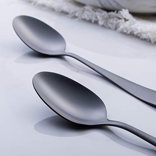 GoGeiLi Matte Black Stainless Steel Flatware Set is made of high quality 18/0 stainless steel, healthy and rust-proof for everyday use. The dinner spoons are ergonomically crafted for a enjoyable dining experience.