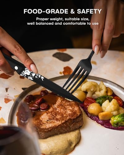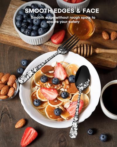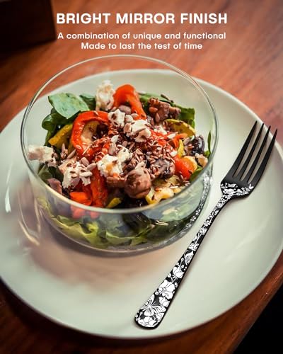UNIQUE AND ELEGANT DESIGN – Have you ever been using the same, probably mismatched, silverware set for years? It’s time to upgrade your outdated utensil set and welcome a more modern cutlery. Our heavy-duty stainless steel silverware set is decorated with a beautiful laser print of butterflies with flowers, stylish shape with a black finish adds a touch of elegant and luxurious dining sense to your table setting.