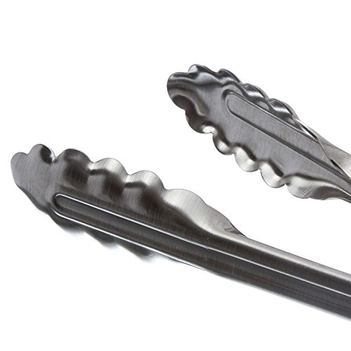 Stainless Steel 9 inch Heavy Duty Scalloped Tongs provide edges to get a good grip on foods, NSF Approved.