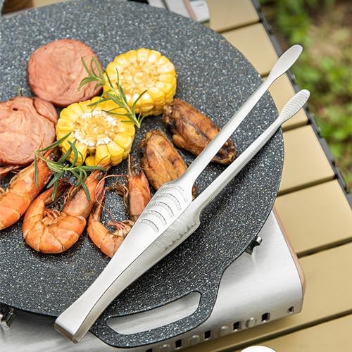 【RELIABLE QUALITY】This kitchen cooking tongs is 10.6 inches long and constructed with food grade 1.8mm thick stainless steel, sturdy, heat resistance, anti-rust, anti-corrosion, light weight, easy to handle, perfect for basic kitchen tasks, whether indoor or outdoor use.