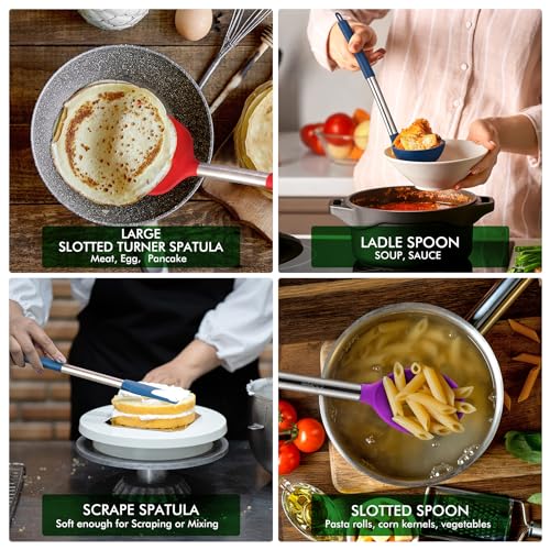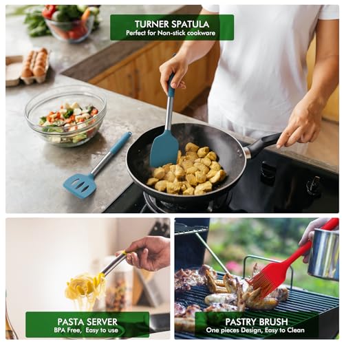 【HIGH QULAITY】: Made of food grade silicone with Non-rust Stainless Steel,BPA Free, sturdy. Unlike the nylon or wooden material easy broken, our utensils set will last long.