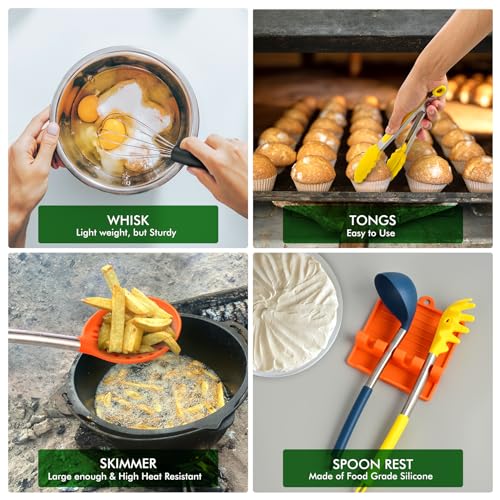 【EASY TO CLEAN】: Dishwasher safe, even though hand wash all is easy. Such a complete cooking utensils set is a great gift idea.